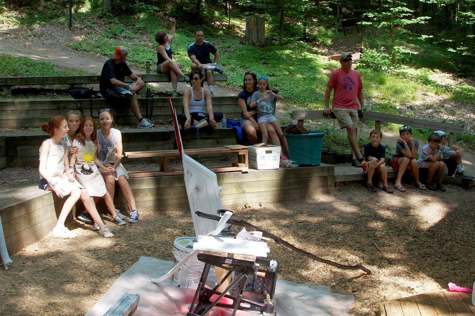 Another beautiful Michigan day for working in the park. It was great to have some awesome helpers, who did an amazing job of painting and helping me to develop ideas for the shanties. I made some progress on various structures–five in process–and installed two finished shanties today.